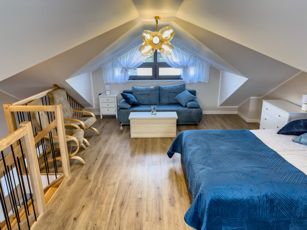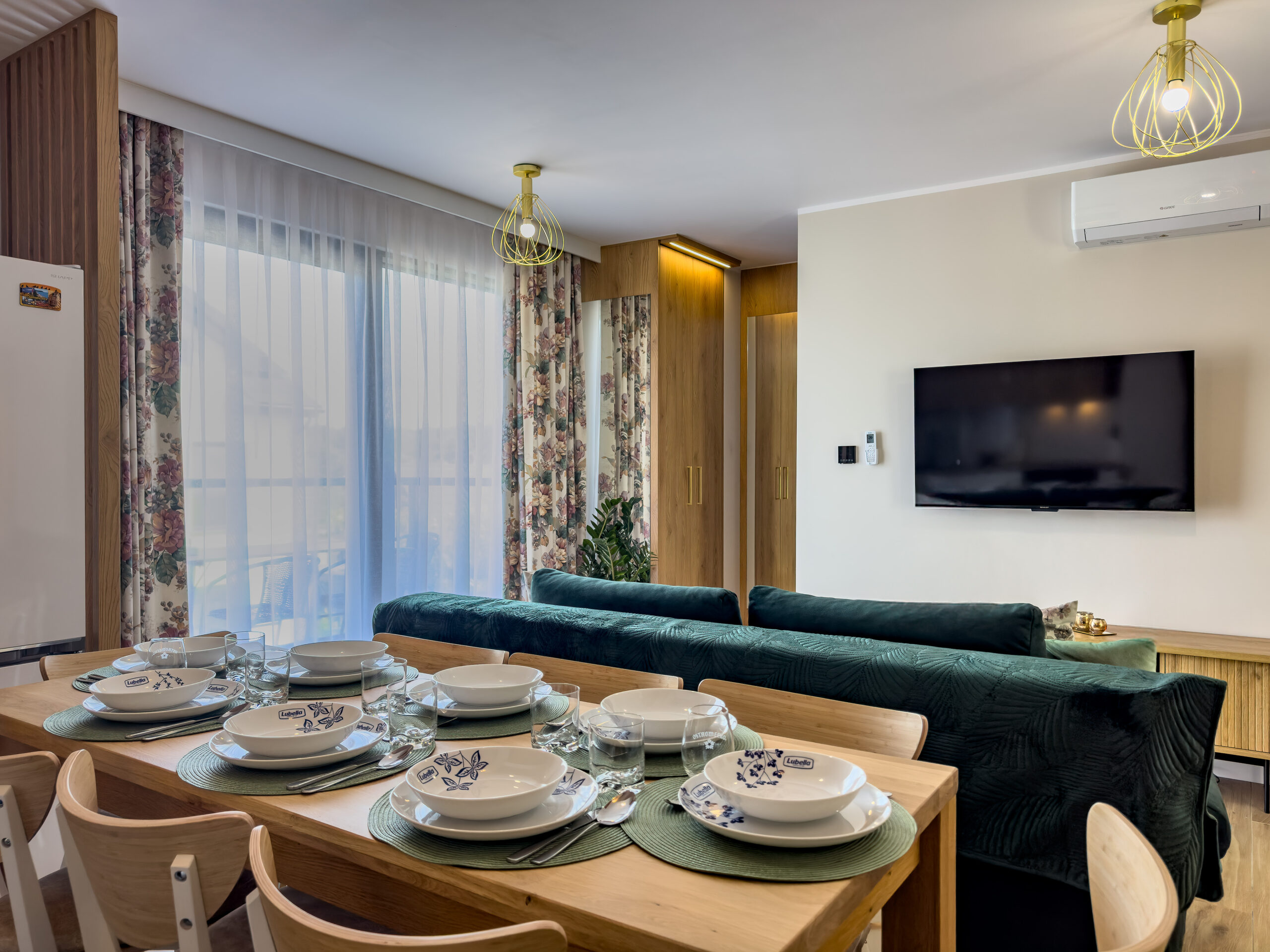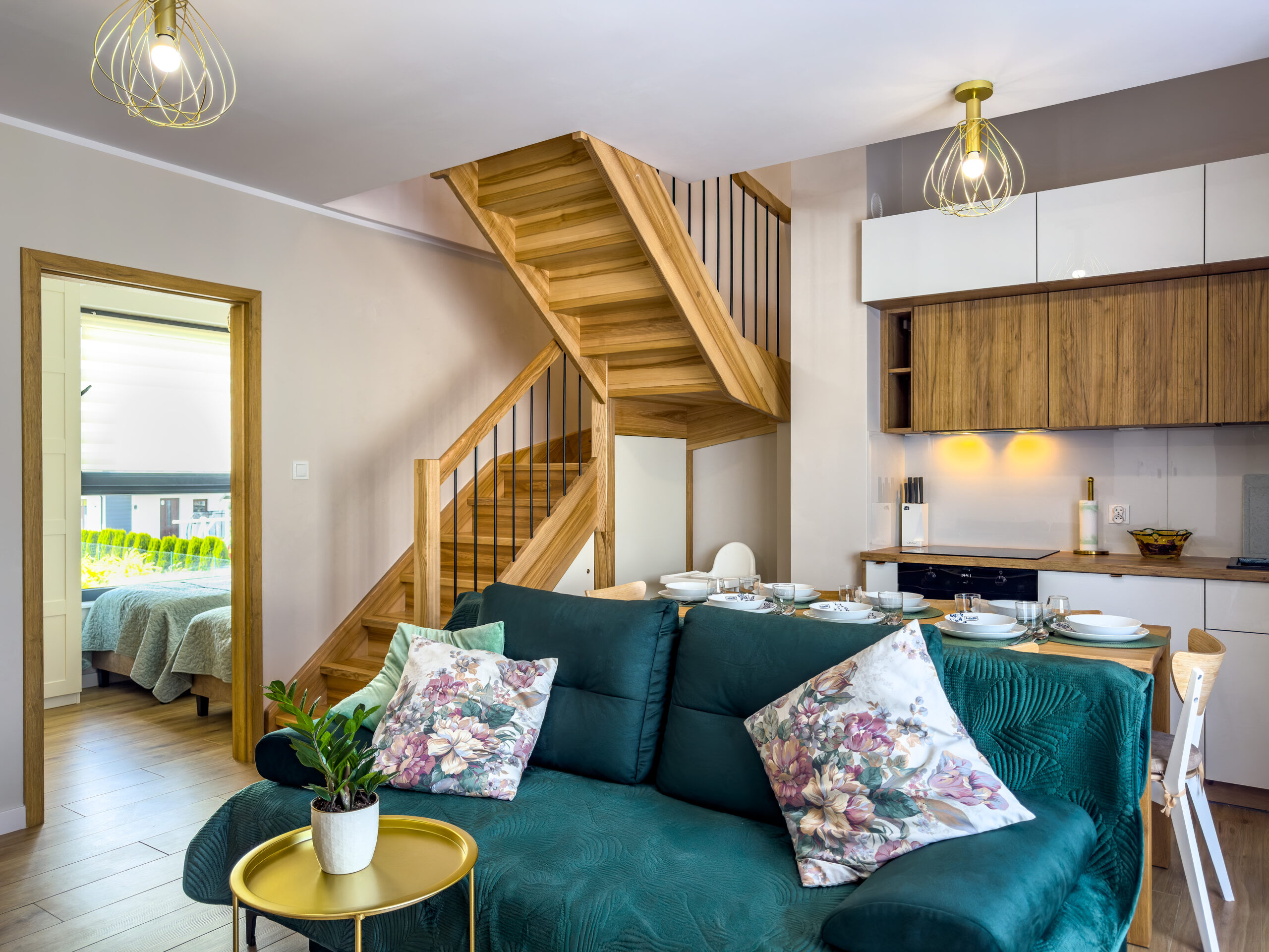 Złota Przystań to nowoczesny, dwupoziomowy apartament z balkonem od wschodu, położony w cichej części Jastrzębiej Góry przy ul. Borowikowej. Przestrzeń zaprojektowana z myślą o rodzinach i grupach przyjaciół wygodnie pomieści do 8 osób. Jasne, stylowe wnętrza, w pełni wyposażony aneks kuchenny oraz dostęp do placu zabaw, basenu i jacuzzi sprawiają, że to idealne miejsce na komfortowy i beztroski wypoczynek.